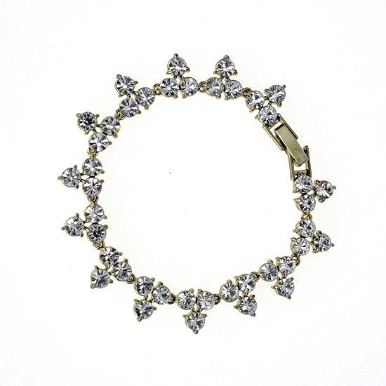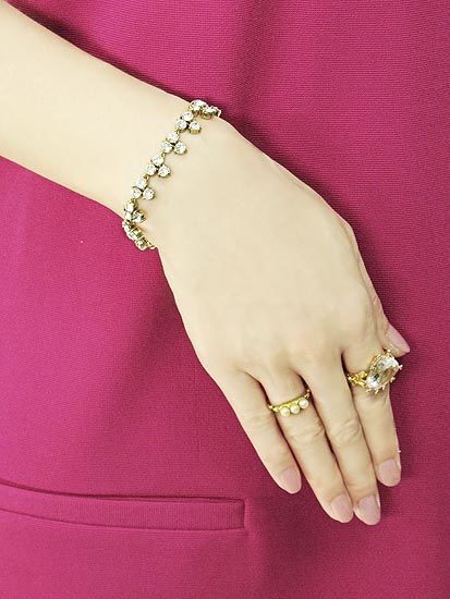手鍊以剔透水晶排列組合而成,簡單大方的設計概念,融合了古典及摩登元素,女孩不容錯過的經典單品。