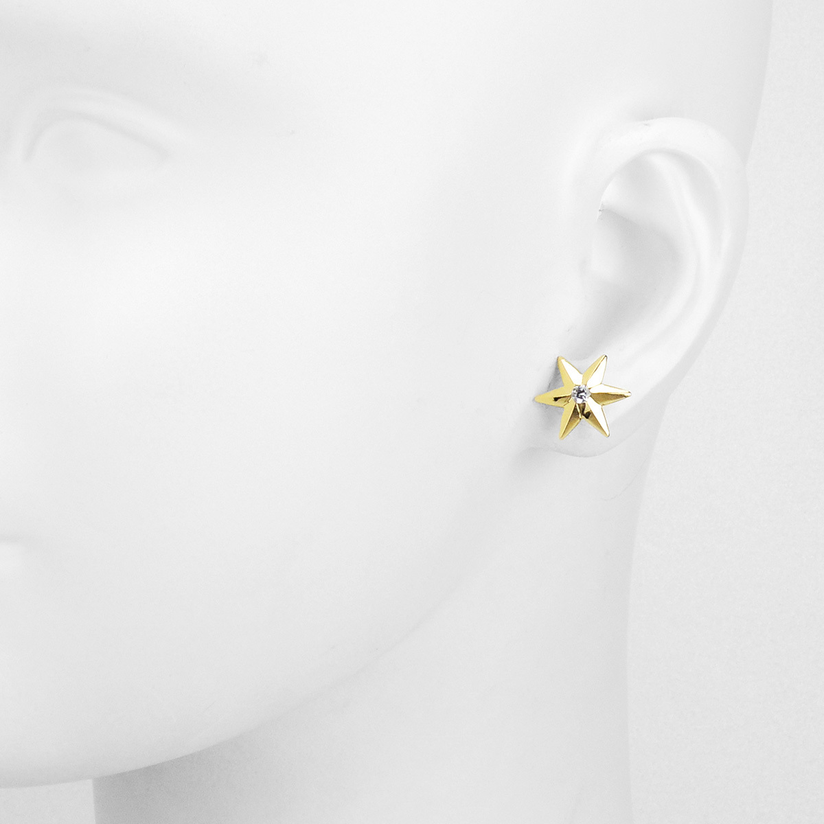 耳環耳針為純銀鍍18K金材質;耳環金屬部分為合金鍍18K金材質;鋯石鑲嵌星星座臺;耳環總長為2 1/4英吋。