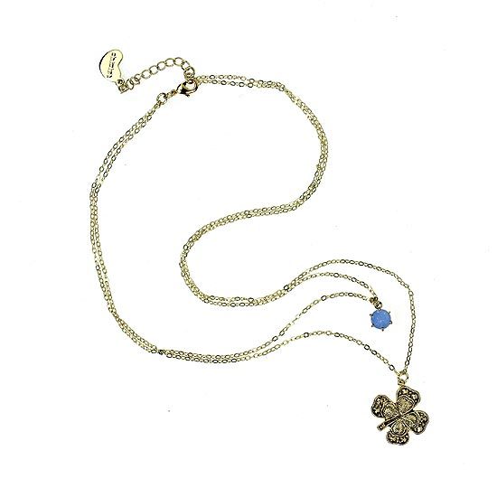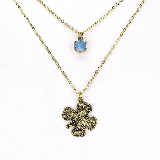 項鍊以富層次感的雙鍊設計,綴以圓形水晶及細膩刻畫的幸運草墜飾作撘配,呈現春氛的活力氣息,為一款十分好搭配的單品!