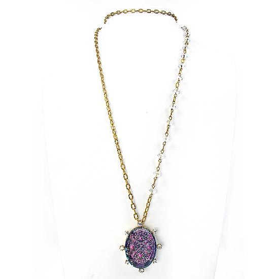 鍊身為合金材質;琉璃座臺為純銀材質。;項鍊總長為33英吋;琉璃墜飾尺寸大小為35mm × 25mm