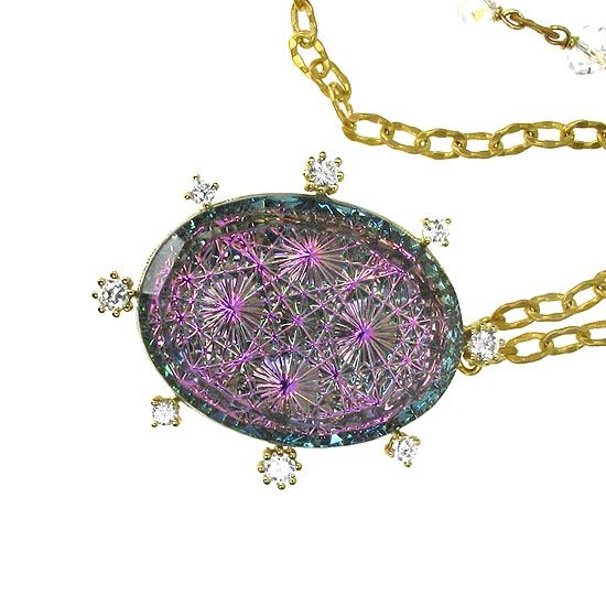 仿古霧金鍊身飾以琉璃珠點綴,精緻手工座臺搭配東歐古典琉璃的華麗墜飾,座台上方並綴有爪鑲鋯石裝飾,十分獨特精緻,彷彿帶有奇幻魔力!