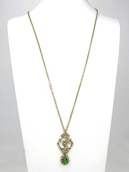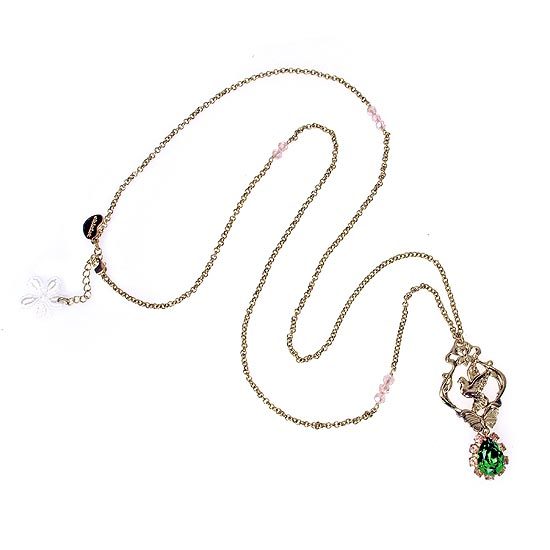 鍊身為合金材質;水晶採用Crystallized-施華洛世奇元素;項鍊總長301/4英吋;墜飾尺寸為1×2英吋;琉璃珠寸4mm×4mm;蕾絲墜飾尺寸為3/4英吋;水晶尺寸分別為3mm×3mm、9mm×12mm