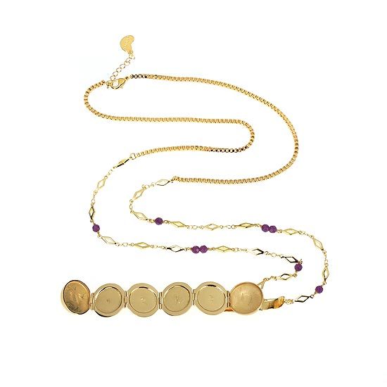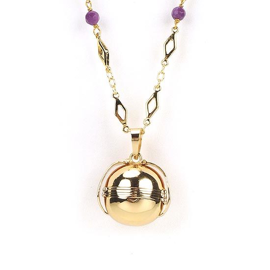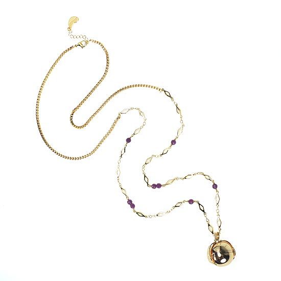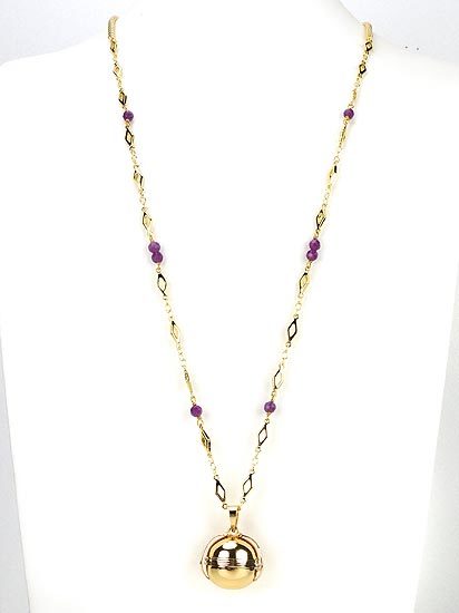 細膩的手工鍊身綴以玉石,搭配可放六張照片的球體墜飾