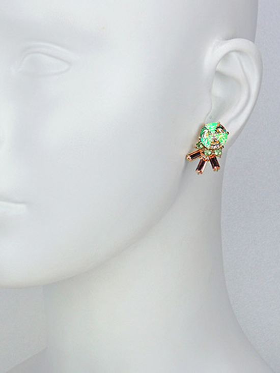 綺麗炫彩的耳環,耀眼奪目,吸引眾人的目光!柔美的圓形刻花水晶,與圓形、長形等不同的切面水晶組合,隨著光線折射閃爍,風采四射,令人為之驚艷!