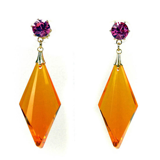 以壓克力切割成獨特的立體菱形造型,如同水晶的多層次亮眼效果,光彩奪目、俐落簡約的切割面呈現率性風格,戴上它宛如美麗的杜蘭朵公主般,成為眾人矚目的焦點。