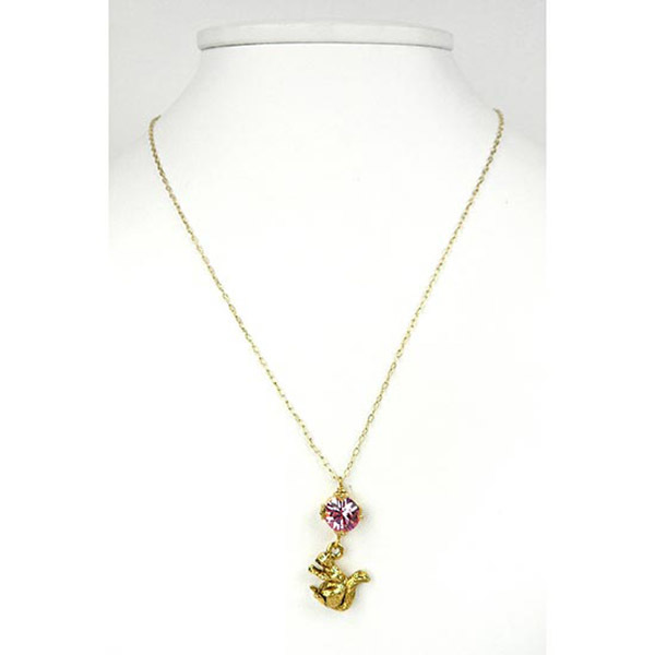 精緻花樣座臺,四爪鑲以圓形水晶,下方並綴以小松鼠墜飾。