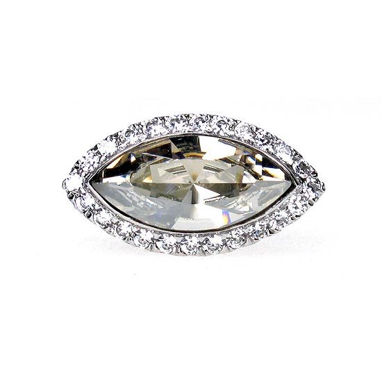 精緻的手工戒臺包鑲大顆馬眼型水晶,水晶周圍以精緻虎爪鑲鋯石點綴,佩戴起來大方耀眼,絕對百搭經典款,突顯個人時尚品味!