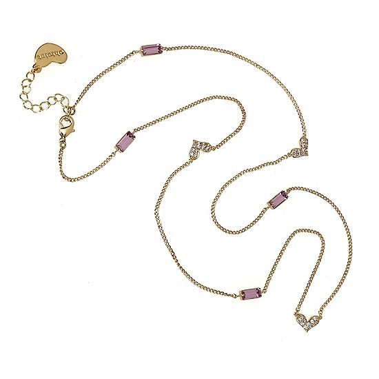 愛情是相傳不朽的詠嘆調~。鍊身以古典釘鑲鋯石的心形墜飾,與爪鑲T型水晶為主體,呈現細膩甜美的風格,讓大小女孩都為之心動的單品!鍊身為銅身鍍18K金材質、鑲臺為純銀鍍18K金材質,水晶部分採用Crystallized-施華洛世奇元素。