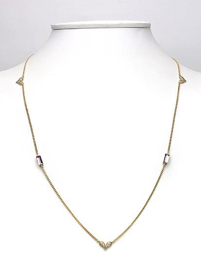 頸鍊總長為20 3/4英吋;延長鍊總長為1 1/2英吋;心形墜飾尺寸大小約為6mmX9mm;T型水晶墜飾尺寸大小約為3mmX7mm。