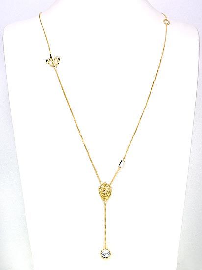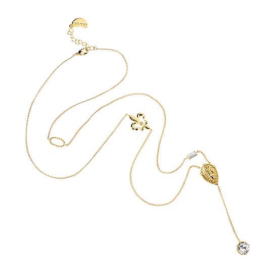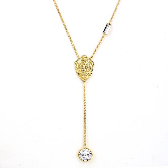 以古典盾牌、皇家鳶尾花等墜飾,結合水晶元素的細緻Y字型長項鍊,柔美與率性兼具可單獨配戴或與其他項鍊做層次混搭,襯托您的獨特個性!