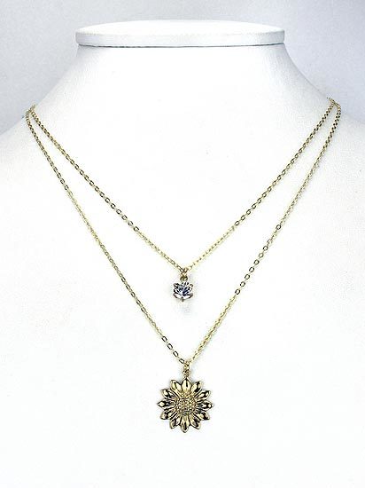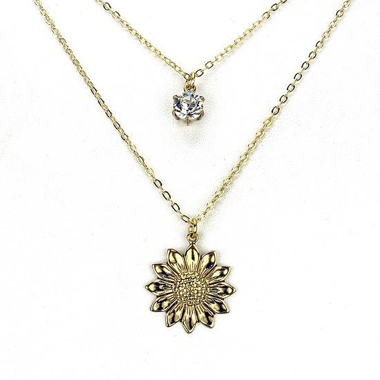 項鍊以富層次感的雙鍊設計,綴以圓形水晶及細膩刻畫的向日葵墜飾作撘配,添增了春天熱情、活力的元素,為一款十分好搭配的單品!