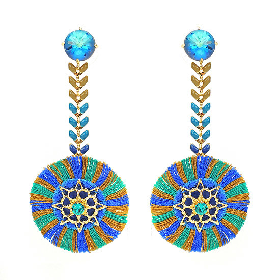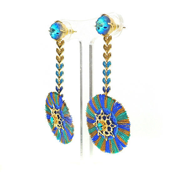 新穎異材質結合的耳環,海葵切割面的水晶搭配鮮豔刺繡,組合出絢爛的異國風情,繽紛迷人,隨興搭配皆可打造出強烈的個人風格!