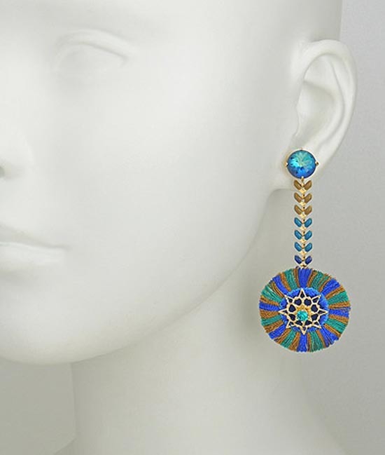 新穎異材質結合的耳環,海葵切割面的水晶搭配鮮豔刺繡,