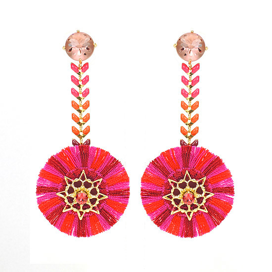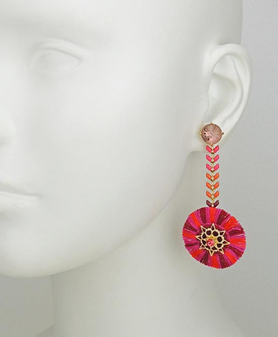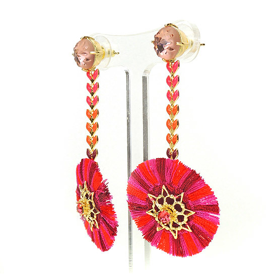 新穎異材質結合的耳環,海葵切割面的水晶搭配鮮豔刺繡,組合出絢爛的異國風情,繽紛迷人,隨興搭配皆可打造出強烈的個人風格!