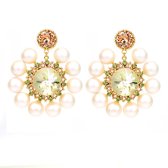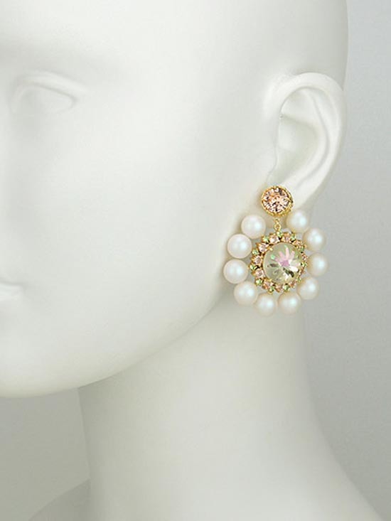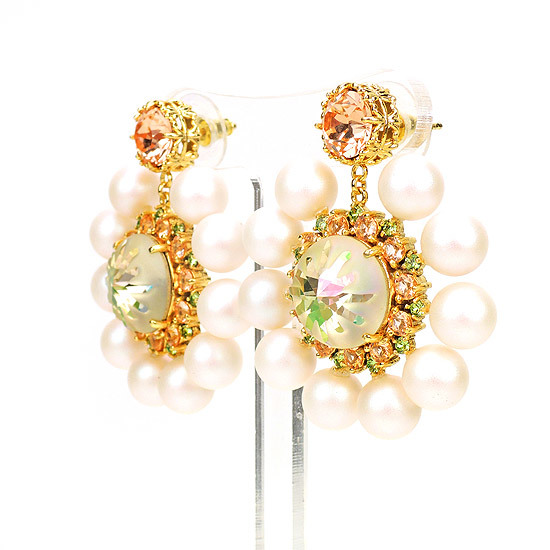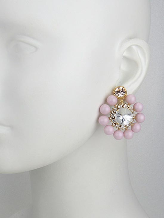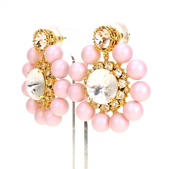 各式圓形切割水晶搭配粉霧珍珠的華美同心圓耳環,細緻的做工,優雅與個性兼具,無論是正式或者平日外出皆可搭配,襯托出獨ㄧ無二的風采!