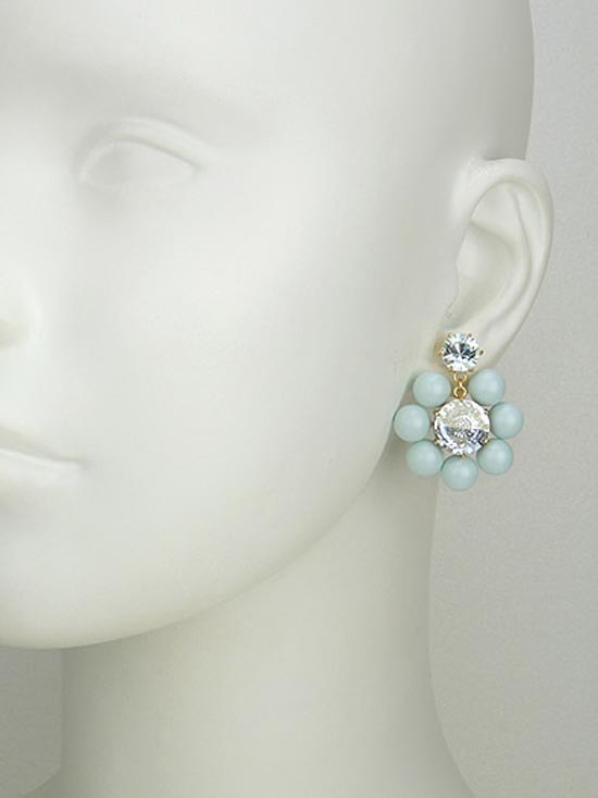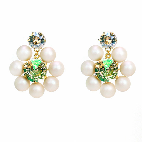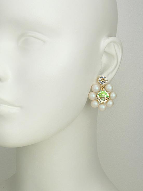 耳環的耳針部分為純銀鍍18K金材質;金屬座臺為合金鍍18K金材質;水晶與水晶珍珠材質採用Crystallized-施華洛世奇元素;耳環尺寸約為1 1/2 x 1英吋。