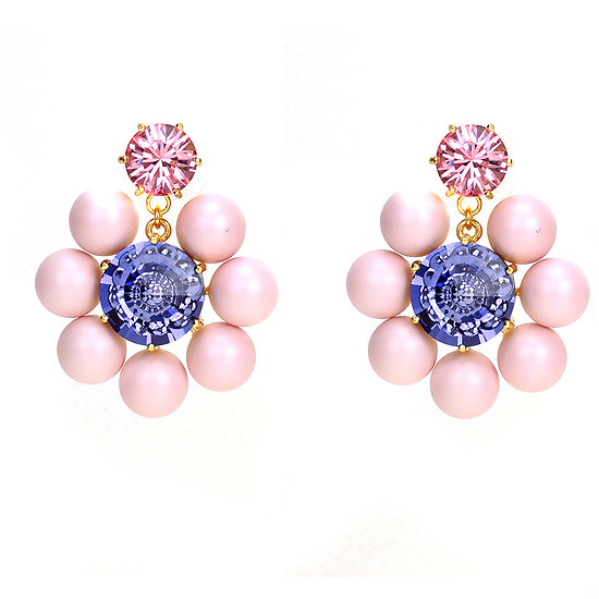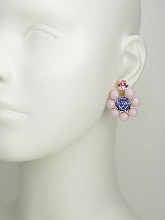 圓形切割水晶搭配粉霧珍珠的華美同心圓耳環,細緻的組合,優雅時尚,讓人ㄧ眼就愛上!