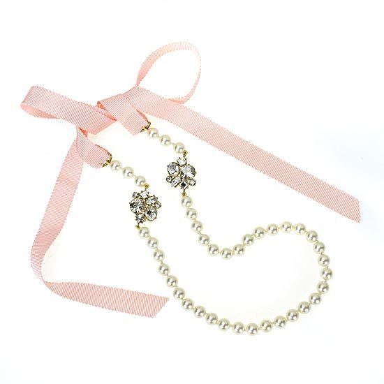項鍊以水晶珍珠串鍊結合水晶墜飾,並搭配粉嫩色彩的法國緞帶綁帶設計,細膩的設計,充滿濃濃的法式浪漫情懷,佩戴上更增添夢幻迷人的風采。