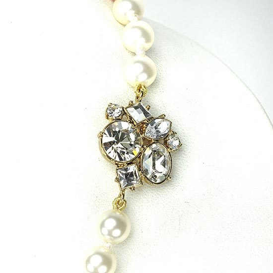 水晶及水晶珍珠採用Crystallized-施華洛世奇元素;項鍊總長為15英寸;緞帶長度為16 1/2英吋;緞帶寬度為11mm;水晶墜飾尺寸大小為18mm x 17 mm;水晶珍珠直徑大小為8 mm