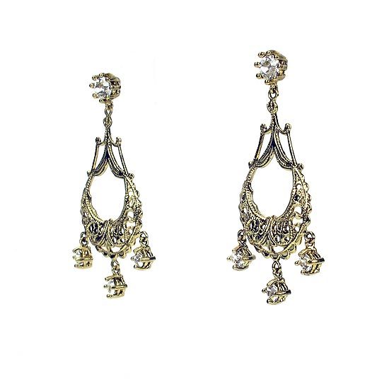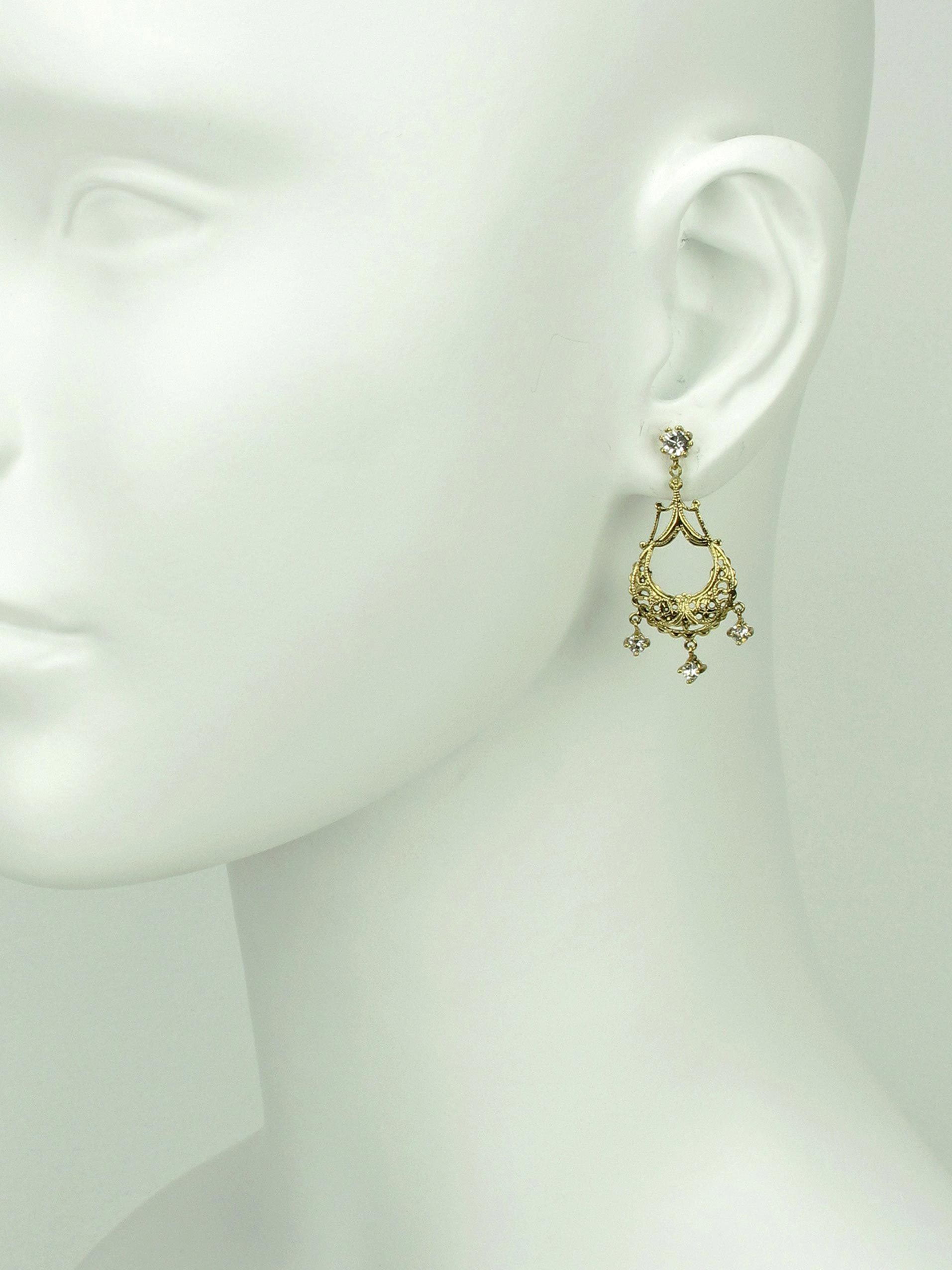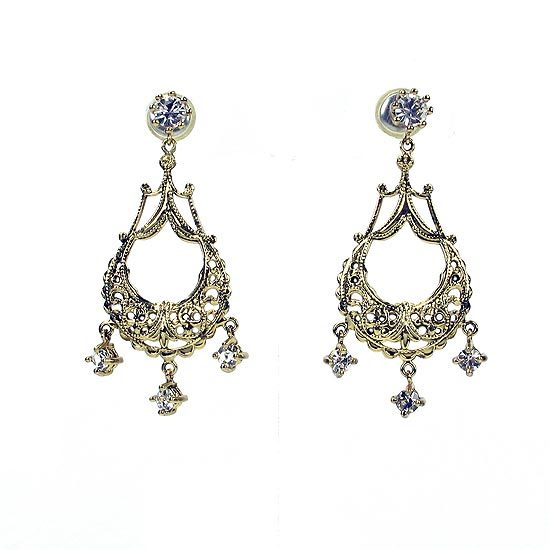 耳環為垂墜飾設計,以細緻的水晶及墜飾相互搭配,復古華麗兼具優雅質感。