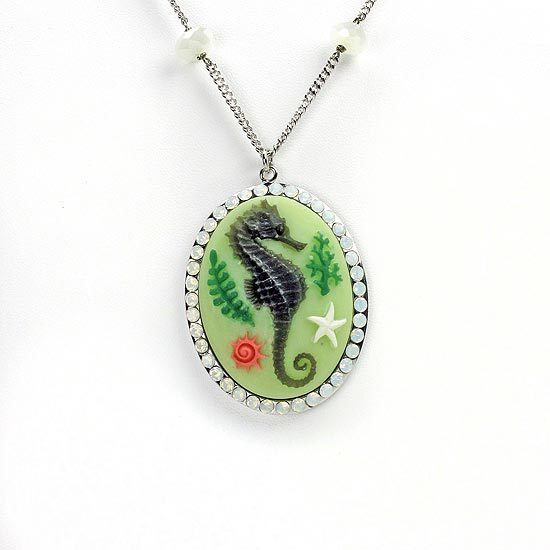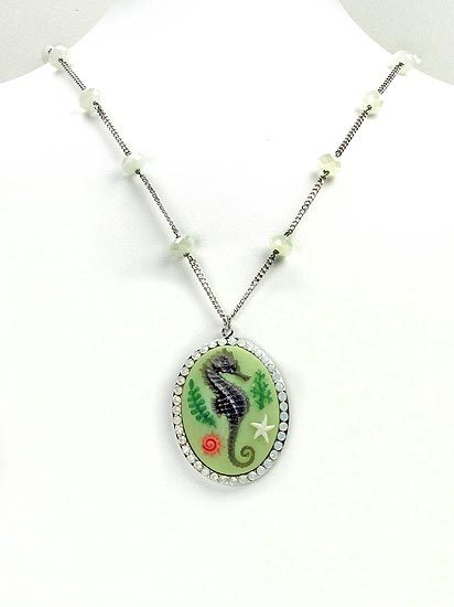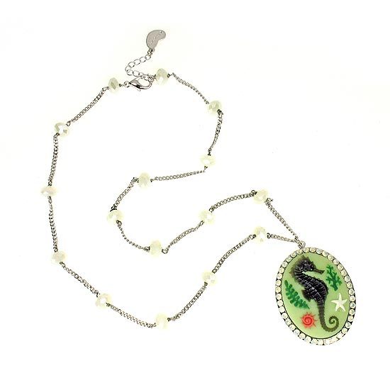 鍊身以琉璃珠妝點,搭配海洋風格的浮雕墜飾,四周以鮮豔的水晶鑽點綴,精巧細膩並結合華麗風格的設計,充滿濃濃的渡假風情,佩戴起來出眾獨特。