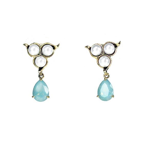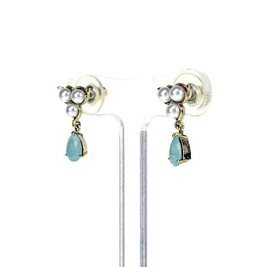 耳針以水晶珍珠點綴,垂墜水滴形水晶,呈現細緻典雅風格。