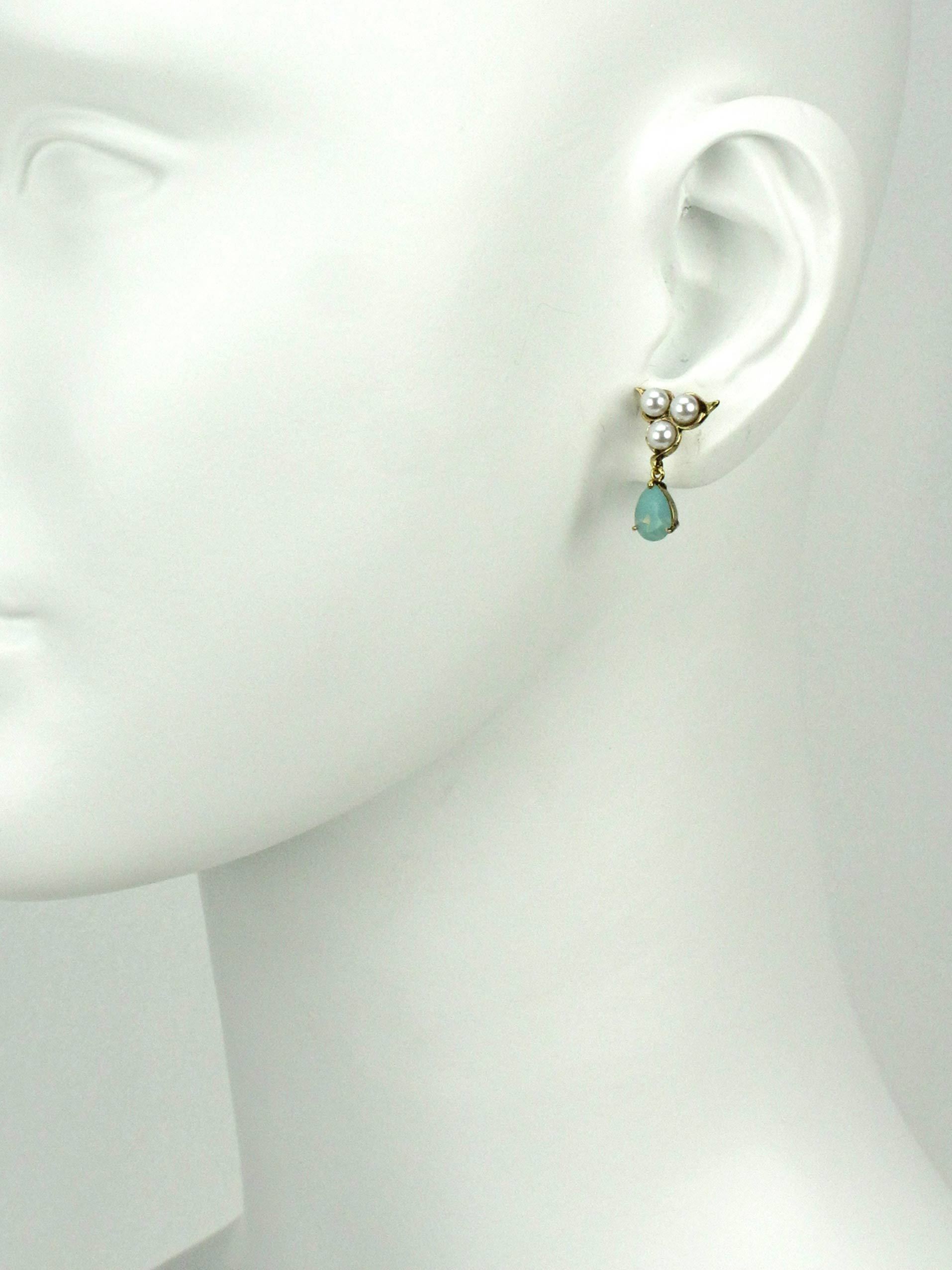 耳針為純銀鍍金材質;水晶及水晶珍珠部分採用Crystallized-施華洛世奇元素;耳環總長為3/4英吋;水滴形水晶尺寸大小為8mm x 6mm