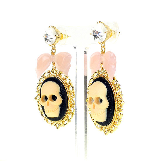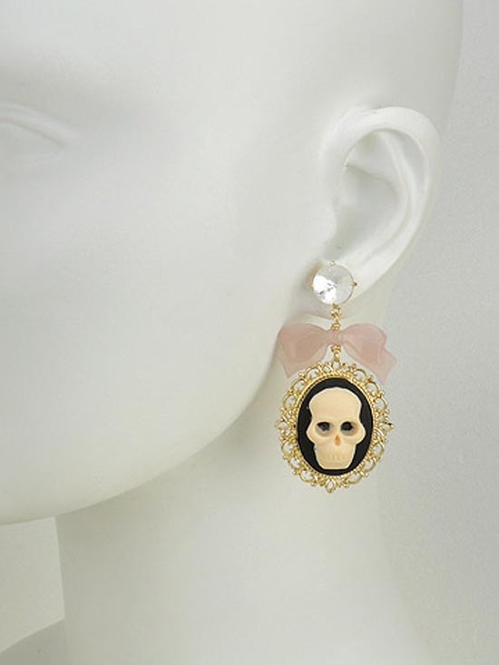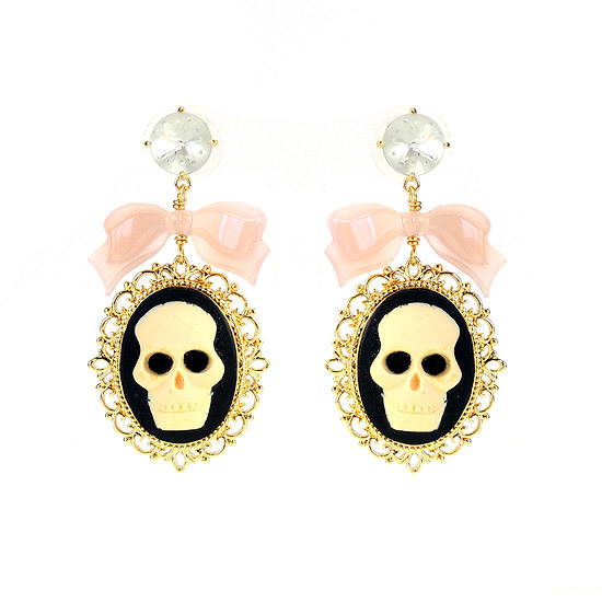 充滿萬聖節神秘氛圍的耳環,精緻的骷髏浮雕搭配粉色調的蝴蝶結,衝突的美感,風格獨特,無論是平日或派對時光,都為個人造型增添光采。