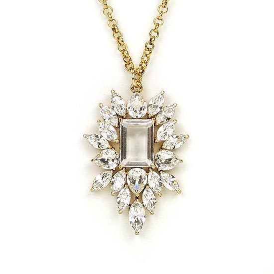 鍊身與墜飾為合金材質;水晶Crystallized施華洛世奇元素;項鍊總長38英吋;延長鍊總長¾英吋;墜飾尺寸30mm × 42mm