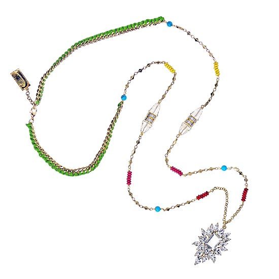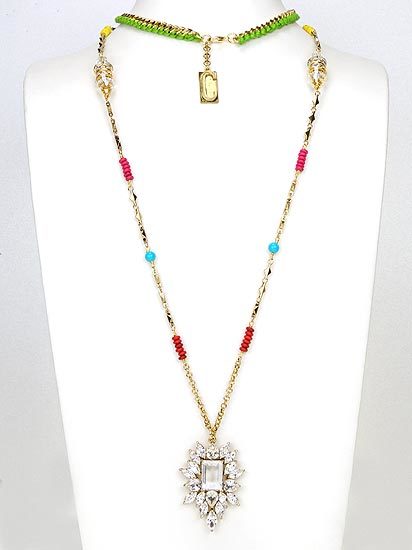 繽紛的手工編織鍊身飾與豐富精緻的綴飾,襯托出高貴璀璨的水晶吊飾,熱情奔放的風格,令人目不轉睛!為一款充滿異國特色的獨特單品。