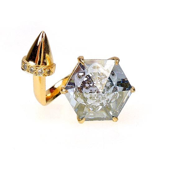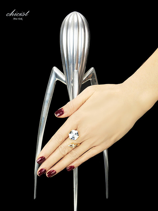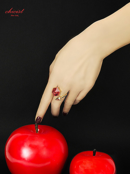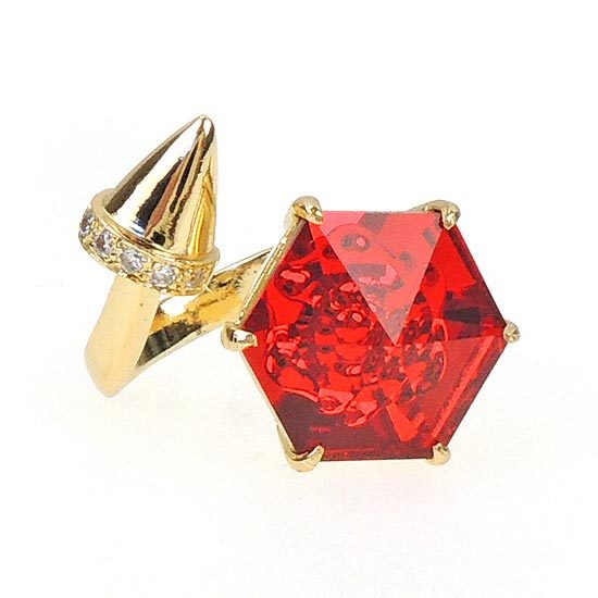新式指縫戒指,個性鉚釘搭配獨特六角刻花水晶,搖滾與華美並存,風格獨特,為指尖增添風采!