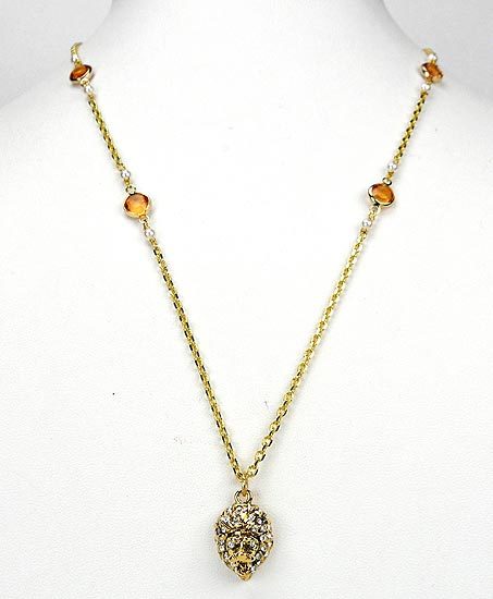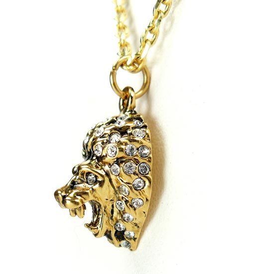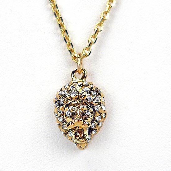 項鍊墜飾以狂吼的獅像為主體,獅像上飾以SWAROVSKI水晶鑽點綴,鍊身並結合小珍珠與亮橘色包鑲水晶設計,呈現出耀眼獨特的風格。