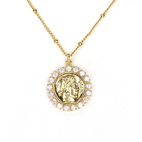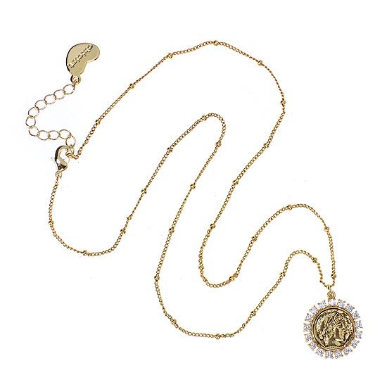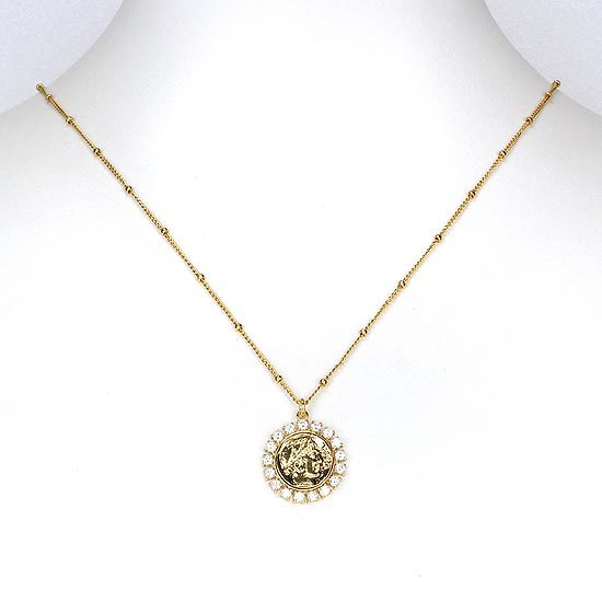 細緻珠鍊搭配拜占庭風格古錢幣,座臺周圍爪鑲璀璨鋯石,華美細緻,經典百搭的造型,不論單戴還是搭配其他項鍊皆相當適合!