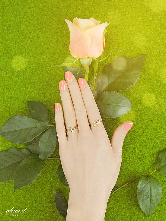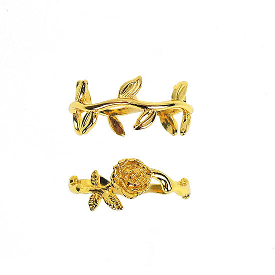 甜蜜的愛苗在心中滋長… 玫瑰花與藤蔓間的對話..,分別以玫瑰花與藤蔓設計的套戒,可互相搭配,非常優雅別緻! 也能與其他款戒指做搭配,不論正式或休閒都非常適合配戴! 為930純銀鍍18K金材質。
