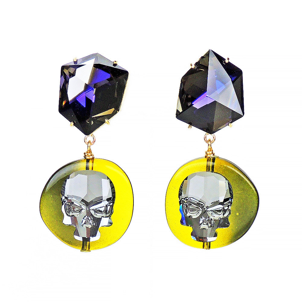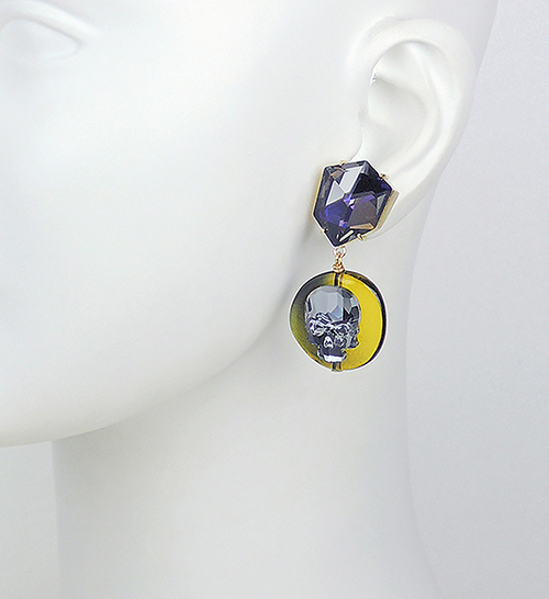 耳針為純銀鍍18K金材質;水晶材質採用Crystallized-施華洛世奇元素;耳環總長為2 英吋;水晶尺寸7/8英吋;漸層壓克力尺寸7/8英吋。
