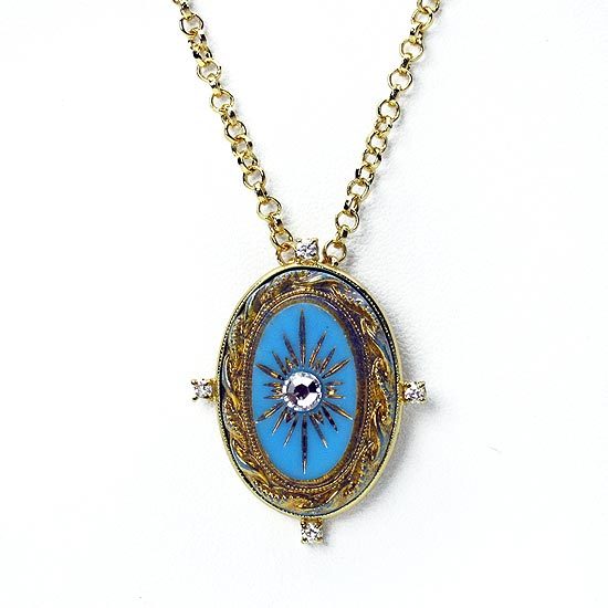 鍊身為合金材質;墜飾座臺為純銀鍍金材質;水晶部分採用Crystallized-施華洛世奇元素;項鍊總長為31英吋;墜飾尺寸大小為30mm × 23mm