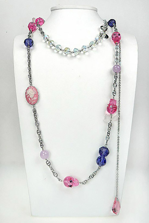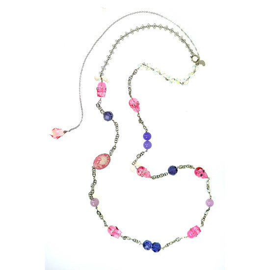 具巧思的鍊身變化設計,結合骷髏頭墜飾、琉璃、玉石、水晶及古典花朵浮雕墜飾而成。