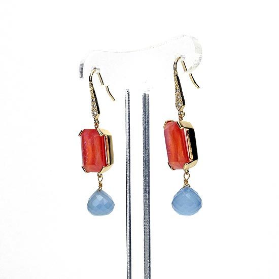 耳環總長1 3/4英吋;八角形人造寶石尺寸為10mm×14mm;水滴形玉石尺寸為8mm×8mm。