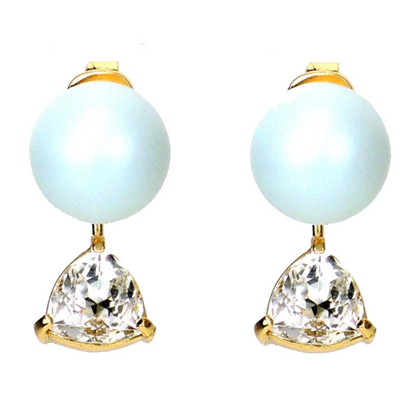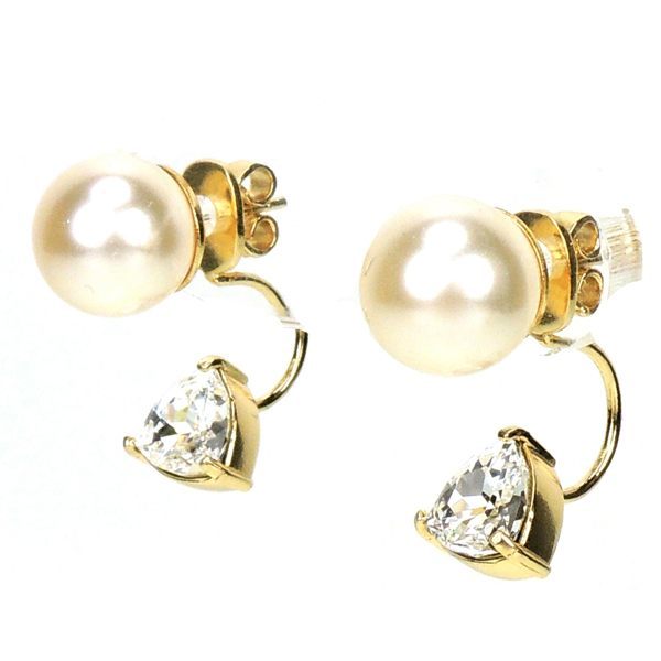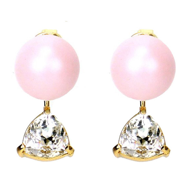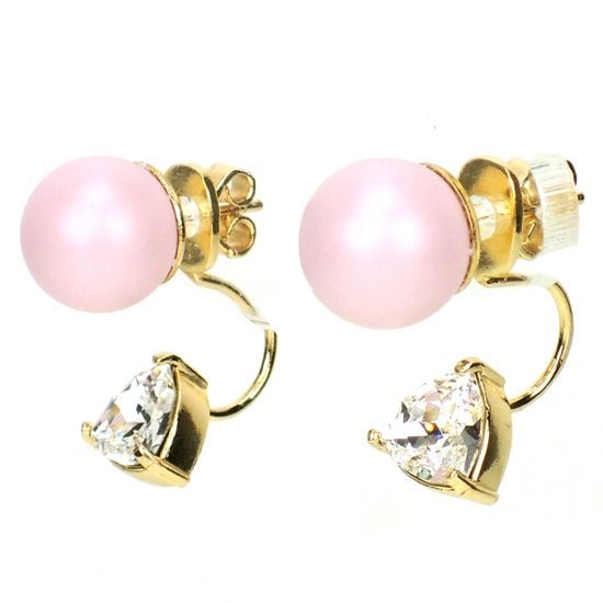 粉嫩甜美的珍珠耳環,搭配著精緻爪鑲的梨形水晶的獨特設計,配戴後氣質典雅出眾、甜美動人!水晶珍珠耳針與璀璨梨形水晶的耳環後背,亦可分開單獨配戴。