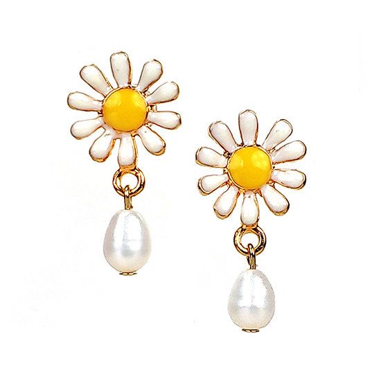 暖暖的陽光,照射在花園裡,錦簇的小雛菊顯得更加潔白無瑕…。手工琺瑯彩繪的精緻小雛菊,綴以優雅小巧的淡水珍珠,散發清新浪漫風貌,不論正式或休閒場合皆合宜,也可搭配珍珠耳垂夾做層次穿搭。