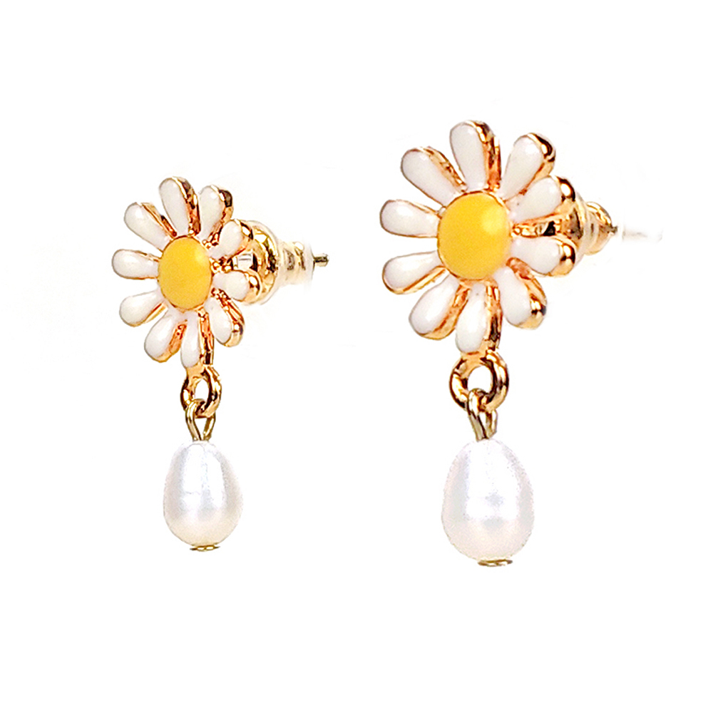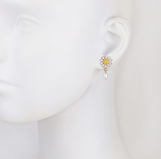 手工琺瑯彩繪的精緻小雛菊,綴以優雅小巧的淡水珍珠,散發清新浪漫風貌,不論正式或休閒場合皆合宜,也可搭配珍珠耳垂夾做層次穿搭。