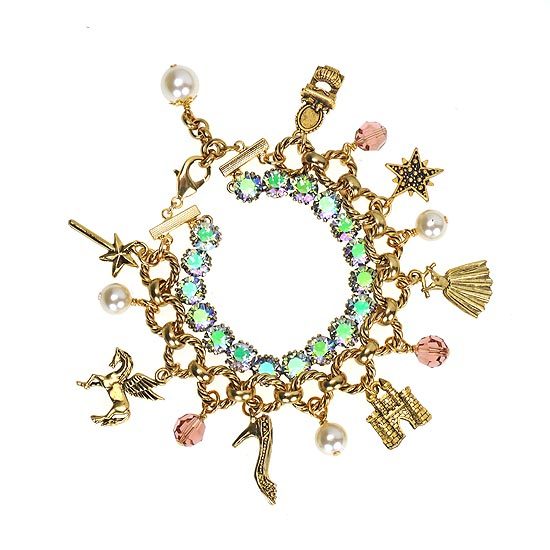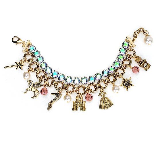 與灰姑娘ㄧ起?加舞會吧!當午夜鐘聲敲響時 ,魔法即將消失,但璀璨的玻璃鞋與美好的故事永留傳~手鍊為魔幻水晶鑽鍊與手工鍊的雙鍊設計,並綴上水晶珍珠、粉嫩水晶、可愛的禮服、城堡、飛馬、灰姑娘的玻璃鞋、魔法星星以及神仙教母的魔法棒等墜飾,充滿美妙與想像,令人著迷。