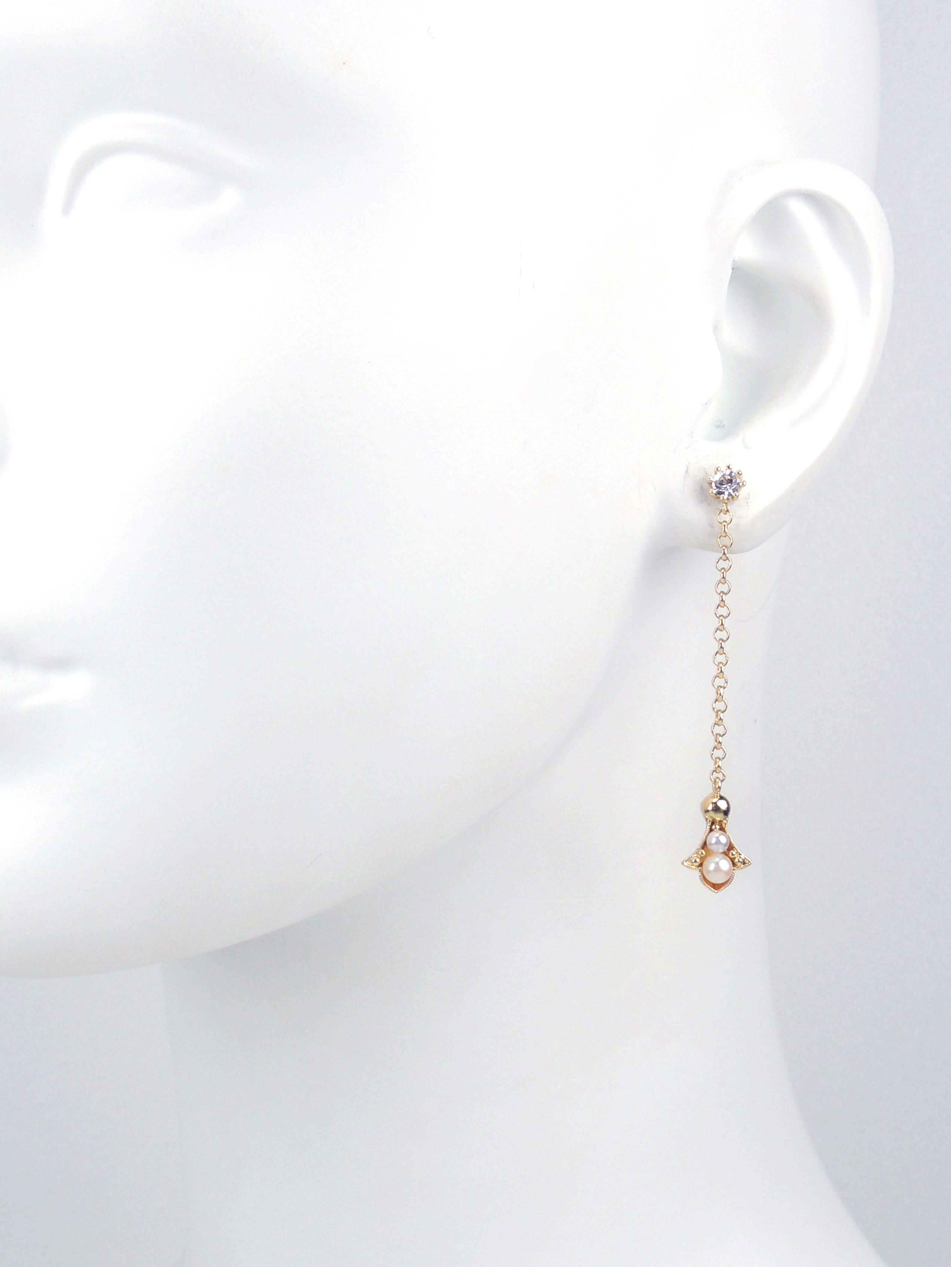 垂墜式耳環搭配優雅的古典珍珠墜飾,散發清麗雅緻的質感,非常好搭配。