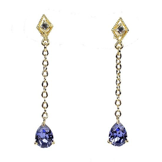 耳針為銅材質;墜飾為合金材質;水晶部分採用Crystallized-施華洛世奇元素;耳環總長為42mm;水滴水晶尺寸為7mm×6mm;菱形墬飾尺寸為8mm×6mm