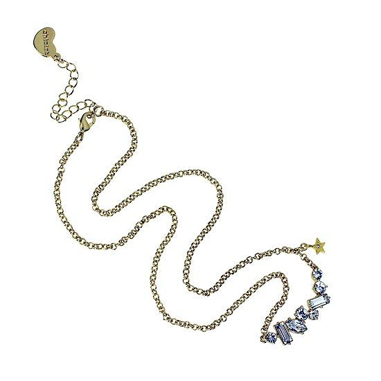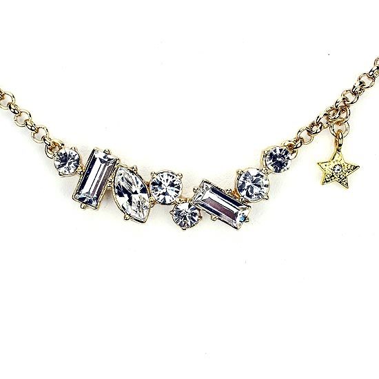 頸鍊的墜飾採用不同形狀水晶組合而成,弧形設計凸顯女性優美的脖子線條。