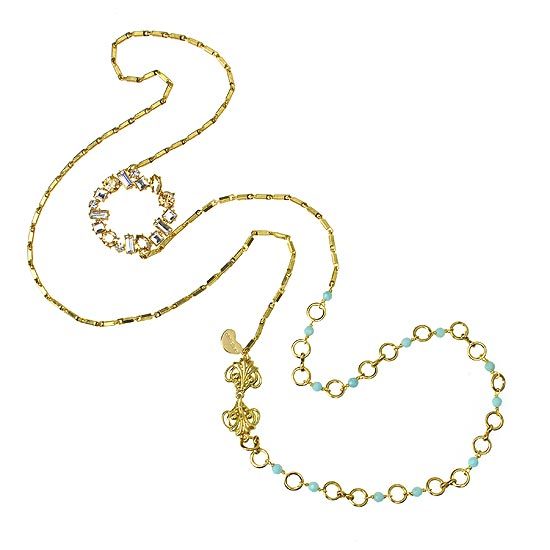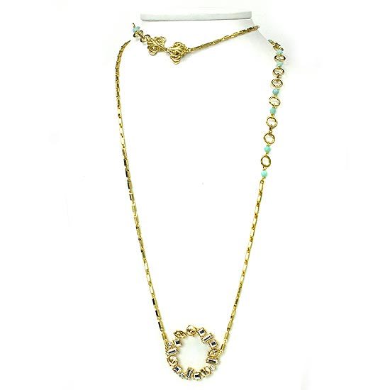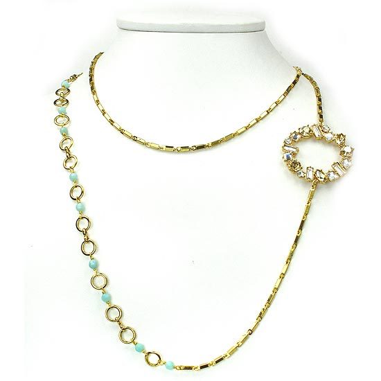 精緻的圓圈形墜飾以貓眼形、圓形、長形、方型等水晶排列組合而成,並與細緻豐富變化的鍊身結合,扣環則以具新藝術風格的圖騰墜飾設計,更添典雅韻味。