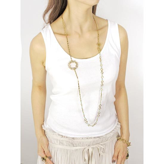 鍊身與墜飾為合金材質;水晶部分採用Crystallized-施華洛世奇元素;項鍊總長為41英吋;水晶圈形墜飾直徑大小為35mm