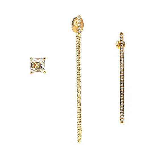 幾何線條的三只不同造型的耳環,加以精緻鋯石的鑲嵌,可隨意搭配變化!