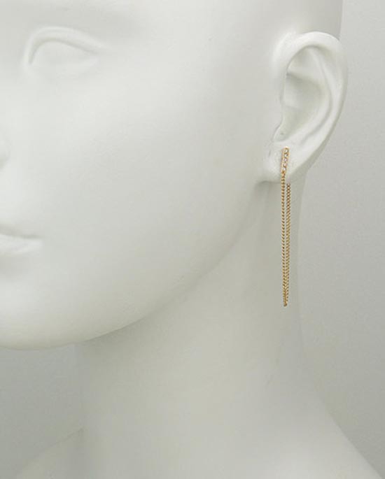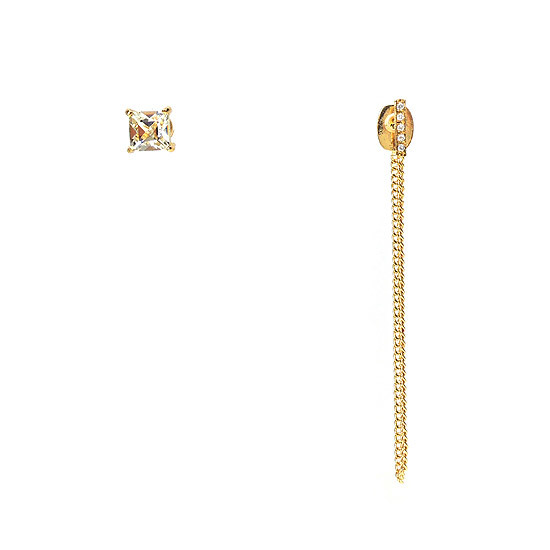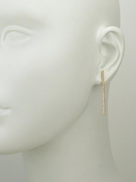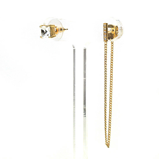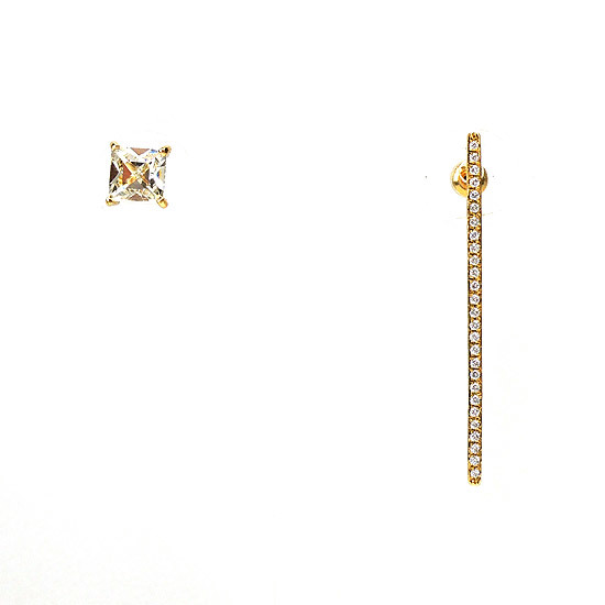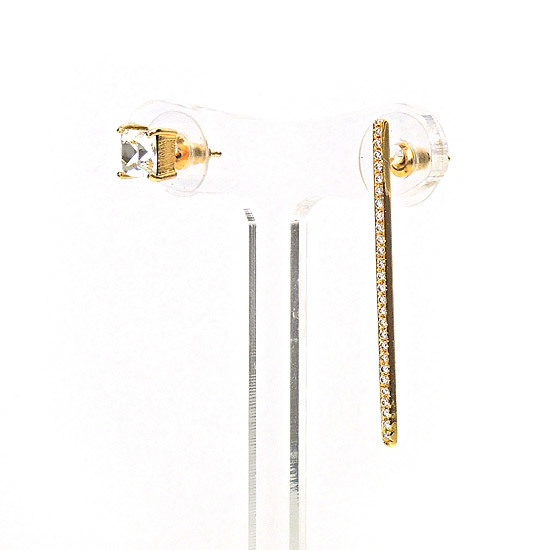 耳針為純銀鍍18K金材質;耳環金屬部分為合金鍍18K金材質;水晶材質採用Crystallized-施華洛世奇元素;方鑽耳針直徑為7mm;鑲鑽短線條耳針長度為8mm;鑲鑽長線條耳針長度40mm