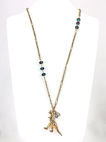 鍊身及墜飾為合金材質;水晶採用Crystallized-施華洛世奇元素;項鍊總長301/2英吋;暴龍墜飾尺寸約為35mm×46mm